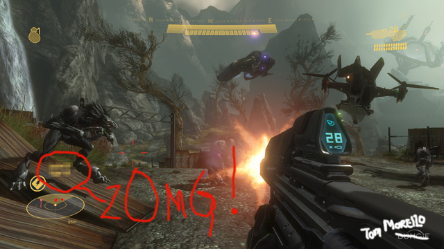 Myth: I read that every weapon in Reach will now be "hit scan." Hell yeah! Truth: Here's the real scoop, straight from Sage Merrill, sandbox Design Lead for Reach: "Most of the primary human weapons were moved to hit scan while the Covenant weapons remain as various speed projectiles." Currently the Magnum, DMR, Assault Rifle and Sniper Rifle are all hit scan, but other weapons such as the Shotgun and Rocket Launcher are, for obvious reasons, not. When the beta hits this spring you'll be able to get up close and personal and see for yourself. Editors Note: For more information about Halo: Reach's sandbox design philosophy and changes, you should check out our most recent podcast featuring none other than Bungie's aforementioned and majestically bearded sandbox designer, Sage Merrill. Myth: Reach is being built for Natal! (See that crosshair to the left as proof!) Truth: Halo: Reach is NOT a Natal title and is being developed expressly with the traditional Xbox 360 controller in mind. Myth: Reach environments don't have any decorators and a lot of those textures we saw in screenshots seem like they could use some work! Truth: The screenshots that recently surfaced were taken from a pre-alpha build that was created last November. A lot of work has happened since then and a lot more work is yet to come. The environment art team is continuing to polish and beautify everything, including adding plenty of decorators. We'll hopefully be able to share some progress soon. Myth: The HUD in Reach is yellow!? Truth: The same pre-alpha build that didn't feature final textures, geometry or decorators also included one of many earlier iterations of the HUD (which even today is still getting tweaked and refined). As of now it's no longer yellow and sources say it won't be returning, either. Editor's Note: We did drop in on David Candland, Bungie's Lead UI designer earlier in the week to ask if HUD customization is something he's ever considered implementing and the answer is yes. The problem with the multi-colored approach, it turns out, is that it can often blend into the color palette on display in a given environment, rendering it effectively unreadable. Since those color palettes can change dramatically from space to space (and even from room to room), it's more problematic than just hooking up the technology and hoping for the best. ![]() Myth: Bungie pixelated some super top secret stuff in one of the screenshots. Truth: Here's how it really went down: Sketch: Dammit, I really like this screenshot and it's the only passable first person asset we have right now, but it's got all this extra UI text in it that's not in campaign. Urk: Just pixelate it. Everybody will think we're hiding super top secret stuff. Sketch: lol Myth: The Assault Rifle has a 600 round capacity and the Magnum tops out at 50! Truth: That's what it shows in the screenshots, fo sho, but you should always take that stuff with a grain of salt. Not only are all of those parameters in flux as the team continues to test and tweak, but when us community dudes get into a build, we're often turning on all kinds of freaky cheats to make sure we can get the right shots in time to deliver. If that means we want to rip through a sequence without having to scrub for ammo, we might flip some dials of our own. Myth: Some of the high resolution assets released on Bungie.net feature flipped and mirrored art. Bungie is lazy! Truth: Astute observers noticed that the weapons on display in our high resolution galleries feature flipped/mirrored art. Seems a few people weren't too happy with that. Seems even a few went as far as to call our team lazy. Suffice to say, those people are jerks and the texture issue on display was identified long before we published the shots. It's definitely gonna be fixed for ship. We figured you wouldn't want us to hold back the sea of high resolution assets on its account. That's just how we roll. Myth: Sketch called the Falcon, the "Warthog of the Skies." Does that mean we're going to get to pilot it in campaign and multiplayer? Truth: Yup. If you're feeling all the more filled in after reading our little dose of Halo: Reach roundups, you should thank the fine forum dwelling folks over at HBO for zeroing in on the set of questions. We did our best to answer what we could honestly, but in the end we were only able to sate a small handful of their curiosities. At this point in the project, just about everything is still being tinkered with, so gameplay specific questions are almost impossible to nail down (but please, do continue debating and arguing what's right and wrong with each weapon or ability without having any context or hands-on experience ;) ). That said, Sketch just put out the request for the formal URL we'll be using to give Marcus a platform to sound off about Halo: Reach's development progress. You'll be getting a much more insightful look into that process soon. Questions concerning major elements and plot points contained in the game's fiction are, and will remain, off limits until you play the game in the fall, but we'll tackle some of the broad strokes a few scrolls down.