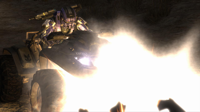 Next Stop, Space!A few curious forum-goers requested that we show off a custom version of Noble Six in a campaign cinematic. Almost as if they didn't believe we'd really swap out the default character model with a hot, custom Armory injection. Well, how 'bout now? ![]() Aren't you a little short for a...never mind. ![]() Crotch Cam! Not too sure about all the Spartan up-skirt action in that last shot, but that should seal the deal if you didn't believe our cinematics team would really make it happen. Plus, it gave me an excuse to spend some more time flying around in space. Win, win. Came From BehindNobody asked to see this, but I did notice some oohs and awes over some recently released game footage that shows off a couple of the new assassinations that our amazing animators worked into Reach. You got a taste of some of these kick ass coups de grace in the multiplayer beta back in May, but that was but a mere sampling of the final carnage count. According to animation producer Matt Richenburg, all told there are over forty custom assassinations packed into the shipping product, most multiplayer, some specific to campaign. Many of them are contextually based upon you and your opponent's position (an aerial assassination is very different than a ground and pound), and a few even depend on whether or not you have some ceremonial plasma in your hot little hands. Like so: ![]() Came From Behind! Space RaceI keep telling Derek I want to show off all of his hard work with an honest to goodness Race-travaganza multimedia blowout. He thinks I'm yanking his crank. I'm not. I know full well that as soon as we show off some rip roaring, high velocity, all terrain action our pre-order metrics are gonna rocket upwards like so much dirt rooster-tailing from the spinning rear wheels of my brand new M274 ULATV. But even though Derek still doesn't believe me and I've yet to secure stage time at a major press event or any airtime on network television, I do have access to a build of Halo: Reach. Gentlemen, start your engines! ![]() Racy! Those who played copious amounts of Halo: CE over LAN are likely already familiar with both Race and Rally. Bam! What's old is new again, and both gametypes are built right in to Reach. ![]() Spire is BIG. The standard rules for Race are simple. Drive towards and through the personal checkpoints highlighted in your HUD, and keep driving until you win. The customized Race HUD will track gate information, lap times, speed (the future is kilometers), time remaining, and what position you're in (if you ain't first, you're last). ![]() In the pipe! Another interesting wrinkle our good man Derek laid down to make Race all the more interesting: landmines. Landmines: an InterludeWhat's a landmine? Should be obvious, right? A small, metal platter with a flashing red bulb perched on top like a violent, blood-soaked maraschino cherry on a death-dealing sundae. You'd have to be some kind of moran not to instantly know you need to steer clear.