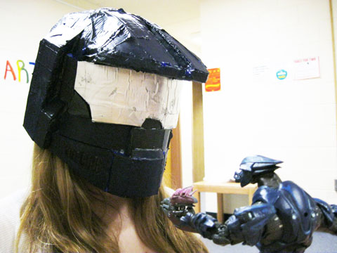 This weekend, for every game you complete in the Defiant Map Pack playlist you will have a chance to win an extra 7,000 credits from a Super Jackpot! You can win the Super Jackpot once a day, so you have the next 3 days to win up to 21,000 in extra credits. The Super Jackpot Weekend will end on Sunday at midnight (Pacific Standard Time). Super Jackpot rewards do not count against your daily credit limit. International AffairsWhile we're on the charitable tip, our constantly coordinating and continuously cheerful Christine notified us on Wednesday that Amazon.com finally caved to her ceaseless support calls, providing a solution that will allow us to ship our charity wristbands to international shores. Yay! Just in time for our drive for Japan Quake Relief to end on April 30th. Boo! Normally, I'd chalk the timing up to pure coincidence, but it's not the only run in we've had with Amazon.com this week. Apparently, we also use their AmazonFresh services to keep our kitchen pantry topped off with delicious fresh fruits, and yesterday morning I entered the building to discover that they'd chopped the stems off of every last banana they'd just delivered. ![]() Uh, I'd like to take a moment to thank Amazon.com for their fast, responsive technical support. Without their diligent efforts, we'd have ended our own efforts still excluding our international friends. And that would have sucked. And these bananas are delicious - an excellent source of potassium. (Please don't kill us, Amazon.) If you were waiting (and waiting) for us to get our act together and offer international shipping for our wristbands you don't have to wait any longer. Since we took so long to get everything sorted out, we're going to extend the wristband portion of our offer past the end date of April 30th, shipping wristbands until we totally run out of our recently restocked shelves. Christine tells me there are about 2,000 left, all told. Take our wristbands, please. Please note that we still can't ship other store items internationally. This special shipping offer won't work for anything but the wristband. If you add unauthorized items to the cart, Amazon.com will give you a big, fat error when you go to check out. They might even send you bananas with the stems sliced off. (You've been warned.) Bungie All Stars – Week 16I got asked this week how long I was going to run these All Star competitions for. Truth is I don't know. While I stare at my calendar considering an end date, you should stare at this week's submissions and consider how cool some of these would be as helmets in game, or on your face. Once again, I'm going to slap the already in-game stuff in a Flickr gallery for ease of viewing and jam the rest inline below, so I can provide the necessary commentary. Mobilized readers, click here. Stosh demanded cardboard this week, and cardboard he got. Considering the short notice, some were actually really impressive. Some...not so much. (I'll let you figure out which is which and spare some hurt feelings.) But let's be honest, if you actually took the time to fashion something out of cardboard, you are special no matter what anybody else says.