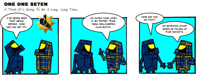 On April 30, 2003, Stuntmutt began turning in episodes of a new comic known as One One Se7en. We'll present them here, in the order in which they were submitted, as they come in. New submissions were added Monday, Wednesday, and Friday. On March 3, 2008, One One Se7en was retired from regular releases - Stunt's life got a tad too busy for 3 strips per week. (He still comes by with new content when the situation arises, however.)