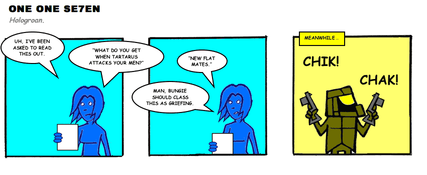 On April 30, 2003, Stuntmutt began turning in episodes of a new comic known as One One Se7en. We'll present them here, in the order in which they were submitted, as they come in. New submissions were added Monday, Wednesday, and Friday. On March 3, 2008, One One Se7en was retired from regular releases - Stunt's life got a tad too busy for 3 strips per week. (He still comes by with new content when the situation arises, however.)