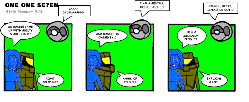 On April 30, 2003, Stuntmutt began turning in episodes of a new comic known as One One Se7en. We'll present them here, in the order in which they were submitted, as they come in. New submissions were added Monday, Wednesday, and Friday. On March 3, 2008, One One Se7en was retired from regular releases - Stunt's life got a tad too busy for 3 strips per week. (He still comes by with new content when the situation arises, however.)