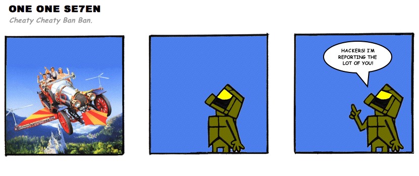 On April 30, 2003, Stuntmutt began turning in episodes of a new comic known as One One Se7en. We'll present them here, in the order in which they were submitted, as they come in. New submissions were added Monday, Wednesday, and Friday. On March 3, 2008, One One Se7en was retired from regular releases - Stunt's life got a tad too busy for 3 strips per week. (He still comes by with new content when the situation arises, however.)