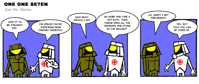 On April 30, 2003, Stuntmutt began turning in episodes of a new comic known as One One Se7en. We'll present them here, in the order in which they were submitted, as they come in. New submissions were added Monday, Wednesday, and Friday. On March 3, 2008, One One Se7en was retired from regular releases - Stunt's life got a tad too busy for 3 strips per week. (He still comes by with new content when the situation arises, however.)