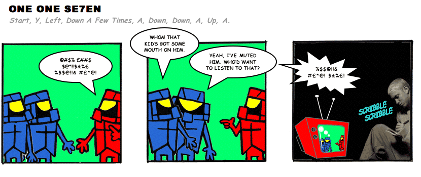 On April 30, 2003, Stuntmutt began turning in episodes of a new comic known as One One Se7en. We'll present them here, in the order in which they were submitted, as they come in. New submissions were added Monday, Wednesday, and Friday. On March 3, 2008, One One Se7en was retired from regular releases - Stunt's life got a tad too busy for 3 strips per week. (He still comes by with new content when the situation arises, however.)