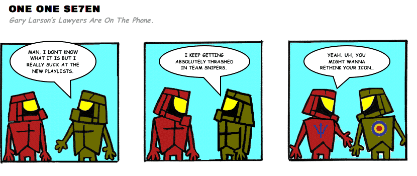 On April 30, 2003, Stuntmutt began turning in episodes of a new comic known as One One Se7en. We'll present them here, in the order in which they were submitted, as they come in. New submissions were added Monday, Wednesday, and Friday. On March 3, 2008, One One Se7en was retired from regular releases - Stunt's life got a tad too busy for 3 strips per week. (He still comes by with new content when the situation arises, however.)
