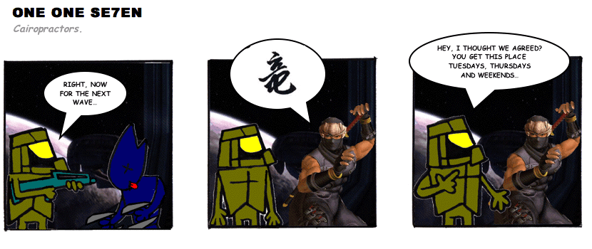 On April 30, 2003, Stuntmutt began turning in episodes of a new comic known as One One Se7en. We'll present them here, in the order in which they were submitted, as they come in. New submissions were added Monday, Wednesday, and Friday. On March 3, 2008, One One Se7en was retired from regular releases - Stunt's life got a tad too busy for 3 strips per week. (He still comes by with new content when the situation arises, however.)