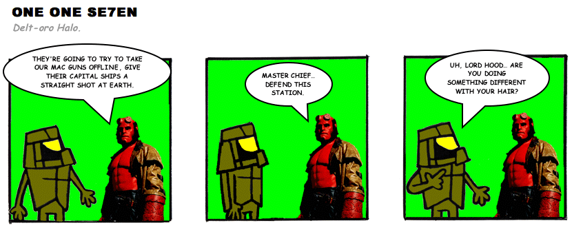 On April 30, 2003, Stuntmutt began turning in episodes of a new comic known as One One Se7en. We'll present them here, in the order in which they were submitted, as they come in. New submissions were added Monday, Wednesday, and Friday. On March 3, 2008, One One Se7en was retired from regular releases - Stunt's life got a tad too busy for 3 strips per week. (He still comes by with new content when the situation arises, however.)