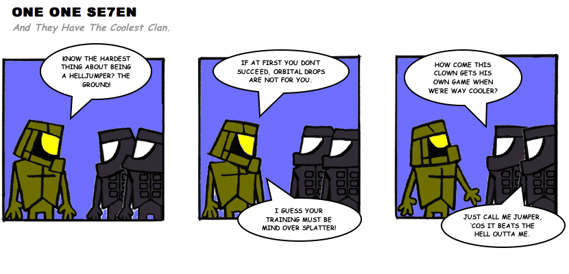 On April 30, 2003, Stuntmutt began turning in episodes of a new comic known as One One Se7en. We'll present them here, in the order in which they were submitted, as they come in. New submissions were added Monday, Wednesday, and Friday. On March 3, 2008, One One Se7en was retired from regular releases - Stunt's life got a tad too busy for 3 strips per week. (He still comes by with new content when the situation arises, however.)