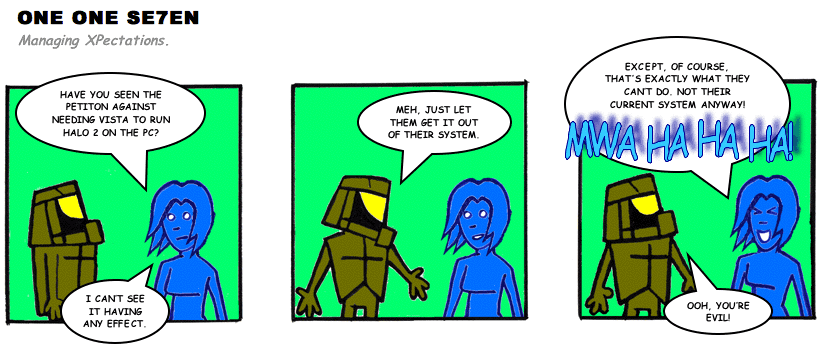 On April 30, 2003, Stuntmutt began turning in episodes of a new comic known as One One Se7en. We'll present them here, in the order in which they were submitted, as they come in. New submissions were added Monday, Wednesday, and Friday. On March 3, 2008, One One Se7en was retired from regular releases - Stunt's life got a tad too busy for 3 strips per week. (He still comes by with new content when the situation arises, however.)