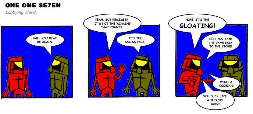 On April 30, 2003, Stuntmutt began turning in episodes of a new comic known as One One Se7en. We'll present them here, in the order in which they were submitted, as they come in. New submissions were added Monday, Wednesday, and Friday. On March 3, 2008, One One Se7en was retired from regular releases - Stunt's life got a tad too busy for 3 strips per week. (He still comes by with new content when the situation arises, however.)