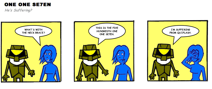 On April 30, 2003, Stuntmutt began turning in episodes of a new comic known as One One Se7en. We'll present them here, in the order in which they were submitted, as they come in. New submissions were added Monday, Wednesday, and Friday. On March 3, 2008, One One Se7en was retired from regular releases - Stunt's life got a tad too busy for 3 strips per week. (He still comes by with new content when the situation arises, however.)