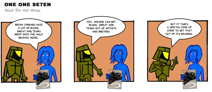 On April 30, 2003, Stuntmutt began turning in episodes of a new comic known as One One Se7en. We'll present them here, in the order in which they were submitted, as they come in. New submissions were added Monday, Wednesday, and Friday. On March 3, 2008, One One Se7en was retired from regular releases - Stunt's life got a tad too busy for 3 strips per week. (He still comes by with new content when the situation arises, however.)
