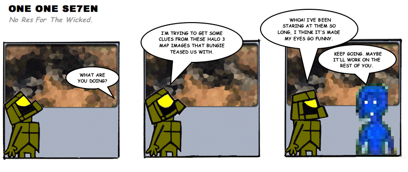 On April 30, 2003, Stuntmutt began turning in episodes of a new comic known as One One Se7en. We'll present them here, in the order in which they were submitted, as they come in. New submissions were added Monday, Wednesday, and Friday. On March 3, 2008, One One Se7en was retired from regular releases - Stunt's life got a tad too busy for 3 strips per week. (He still comes by with new content when the situation arises, however.)