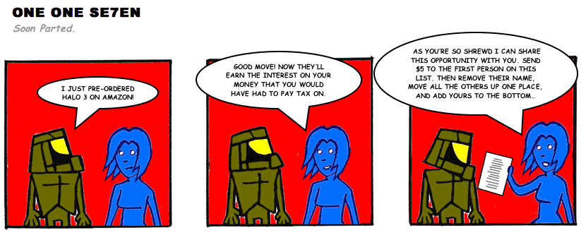 On April 30, 2003, Stuntmutt began turning in episodes of a new comic known as One One Se7en. We'll present them here, in the order in which they were submitted, as they come in. New submissions were added Monday, Wednesday, and Friday. On March 3, 2008, One One Se7en was retired from regular releases - Stunt's life got a tad too busy for 3 strips per week. (He still comes by with new content when the situation arises, however.)