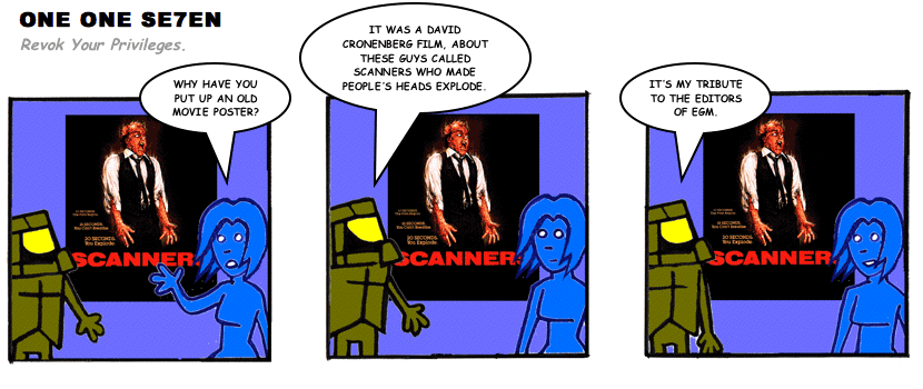 On April 30, 2003, Stuntmutt began turning in episodes of a new comic known as One One Se7en. We'll present them here, in the order in which they were submitted, as they come in. New submissions were added Monday, Wednesday, and Friday. On March 3, 2008, One One Se7en was retired from regular releases - Stunt's life got a tad too busy for 3 strips per week. (He still comes by with new content when the situation arises, however.)