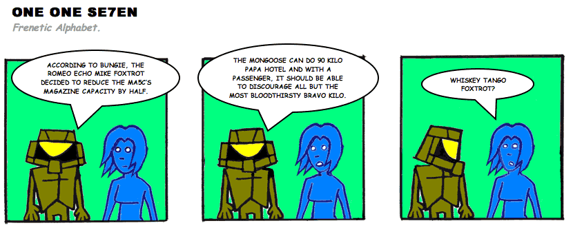 On April 30, 2003, Stuntmutt began turning in episodes of a new comic known as One One Se7en. We'll present them here, in the order in which they were submitted, as they come in. New submissions were added Monday, Wednesday, and Friday. On March 3, 2008, One One Se7en was retired from regular releases - Stunt's life got a tad too busy for 3 strips per week. (He still comes by with new content when the situation arises, however.)
