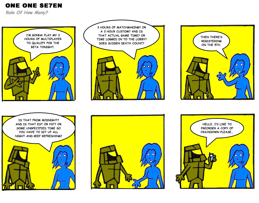 On April 30, 2003, Stuntmutt began turning in episodes of a new comic known as One One Se7en. We'll present them here, in the order in which they were submitted, as they come in. New submissions were added Monday, Wednesday, and Friday. On March 3, 2008, One One Se7en was retired from regular releases - Stunt's life got a tad too busy for 3 strips per week. (He still comes by with new content when the situation arises, however.)