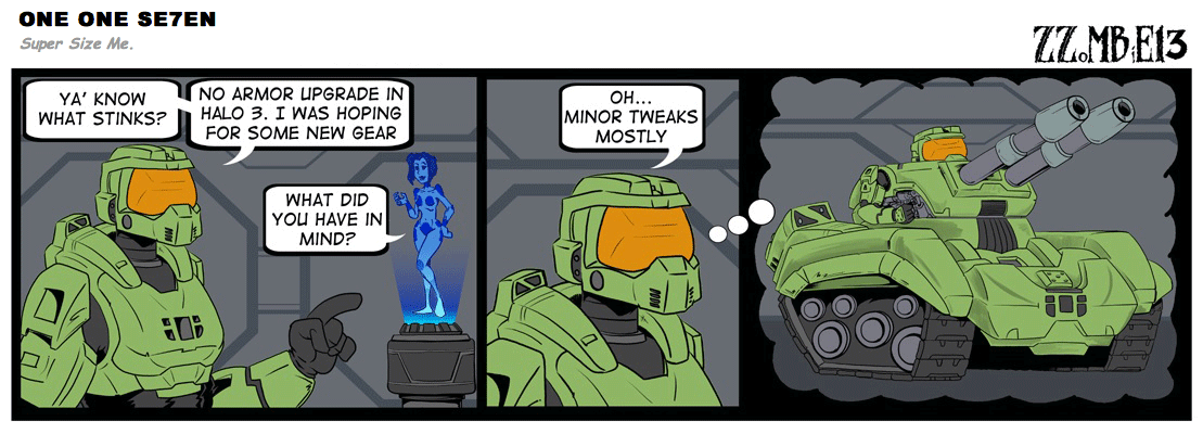On April 30, 2003, Stuntmutt began turning in episodes of a new comic known as One One Se7en. We'll present them here, in the order in which they were submitted, as they come in. New submissions were added Monday, Wednesday, and Friday. On March 3, 2008, One One Se7en was retired from regular releases - Stunt's life got a tad too busy for 3 strips per week. (He still comes by with new content when the situation arises, however.)