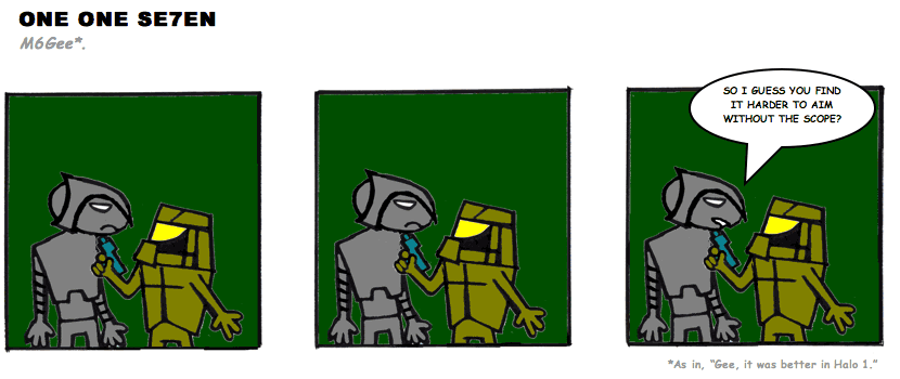 On April 30, 2003, Stuntmutt began turning in episodes of a new comic known as One One Se7en. We'll present them here, in the order in which they were submitted, as they come in. New submissions were added Monday, Wednesday, and Friday. On March 3, 2008, One One Se7en was retired from regular releases - Stunt's life got a tad too busy for 3 strips per week. (He still comes by with new content when the situation arises, however.)