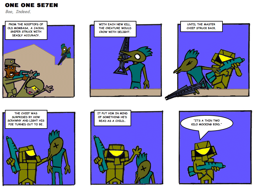 On April 30, 2003, Stuntmutt began turning in episodes of a new comic known as One One Se7en. We'll present them here, in the order in which they were submitted, as they come in. New submissions were added Monday, Wednesday, and Friday. On March 3, 2008, One One Se7en was retired from regular releases - Stunt's life got a tad too busy for 3 strips per week. (He still comes by with new content when the situation arises, however.)